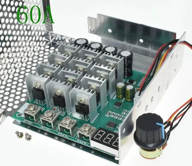 12V 24V 36V DC Motor Speed Controller 60A Digit Display High Power Motor Governor with Switch Potentiometer, 0-100% Adjustable