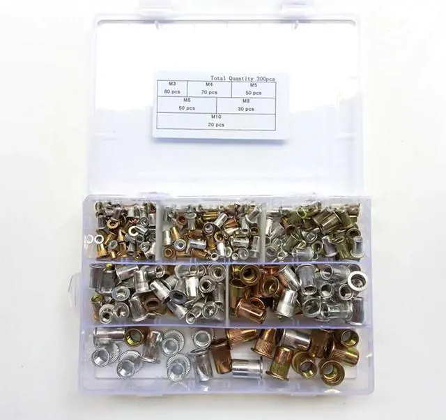 300PCS/Set M3 M4 M5 M6 M8 M10 Rivetnut Flat Head Threaded Rivet Nut Insert Nutsert Cap Rivet Assortment, Zinc Plated, Aluminum