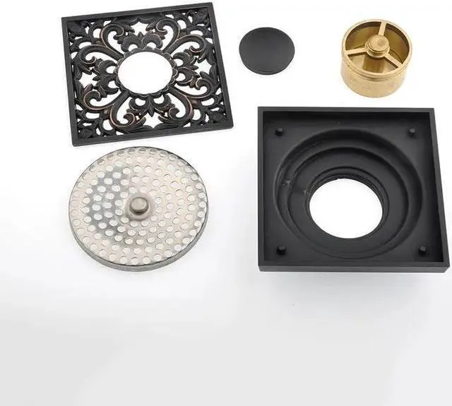 Oil Rubbed Bronze Bathroom Solid Brass Floor Drain Square Grate Waste Drainer