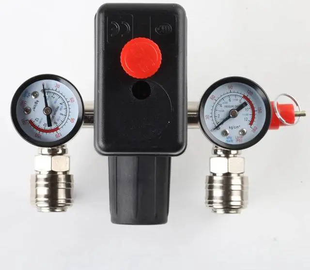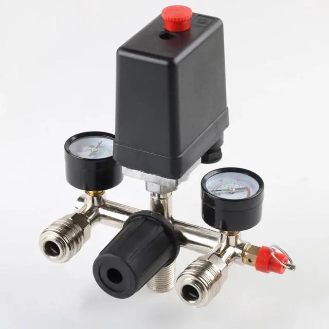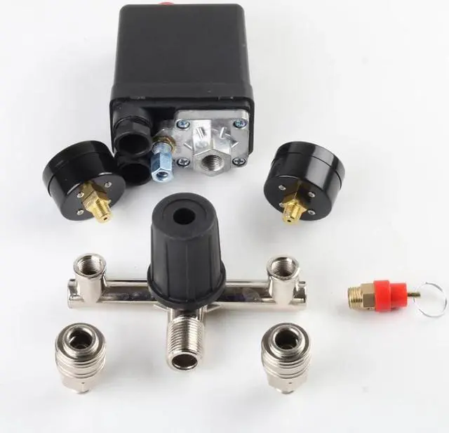 220V 90-125PSI Air Compressor Pressure Control Switch with Pressure Regulator Gauges Safety Valve Fittings, Normally Closed
