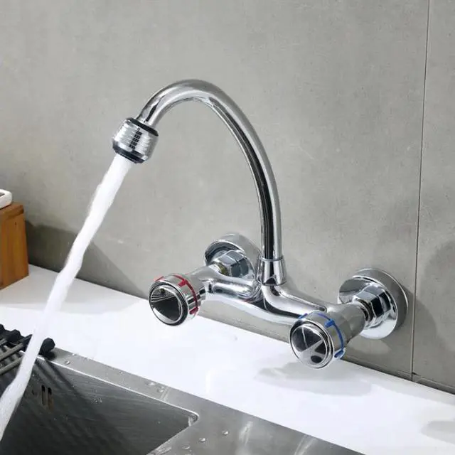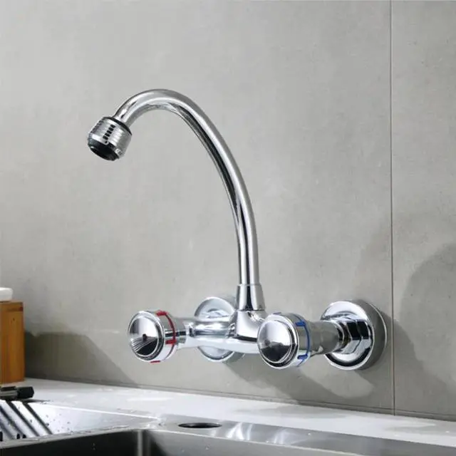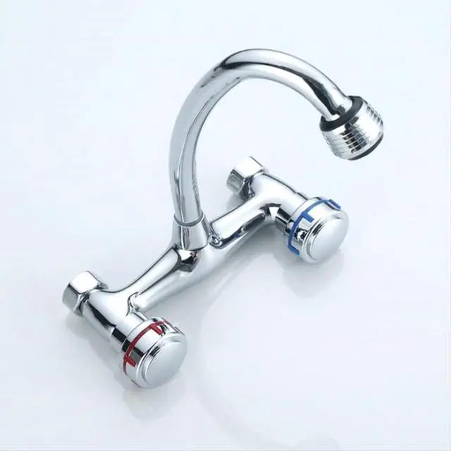 1PC Brass Chrome Taps For Kitchen Sink Kitchen Tap Dual Hole Wall Kitchen Mixer Kitchen Faucet torneira cozinha