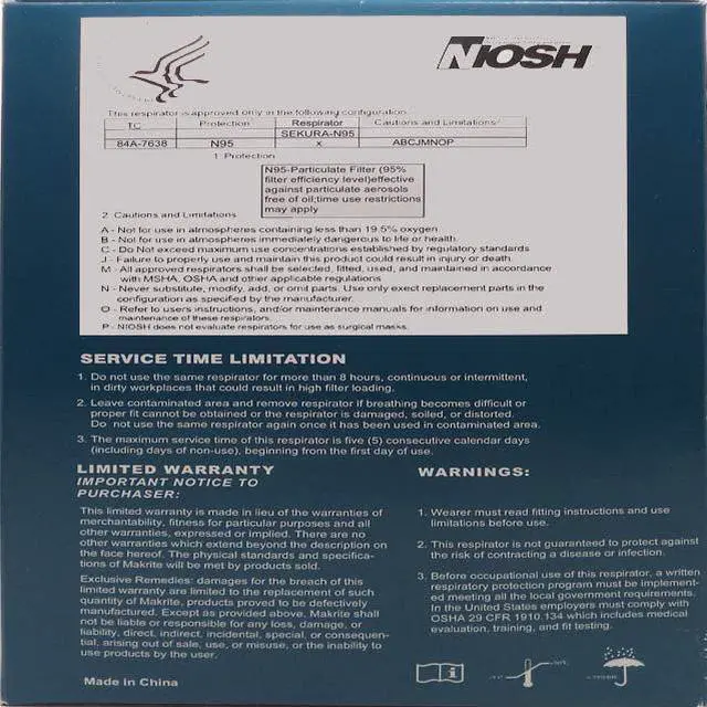 NIOSH approved N95 rating Fluid Resistance 80 mmHg Flammability Rating Class I Adjustable nose clip Braided and fused headbands Particulate Respirator