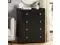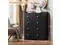 Material: Engineered wood Color: Black Drawers: 4 Size: 23.62" W × 14.56" D × 33.15" H Drawer Height: 7.28" Top Feature: Raised anti-dropping panels Safety: Anti-tip wall anchor