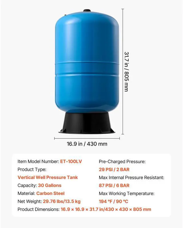 Pre-Charged Pressure: 29 PSI / 2 BAR