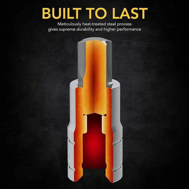 DURABLE - Drop-forged, Heat-treated S2 alloy steel bits, Reduce wear-outs. Hardened treated Chrome Vanadium steel sockets, Increase turning power.
