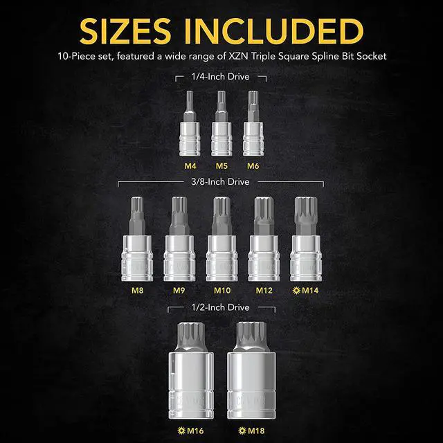 MUST HAVE - 10-Piece set XZN Triple Square Spline Bit Socket. Crafted and Designed to work on