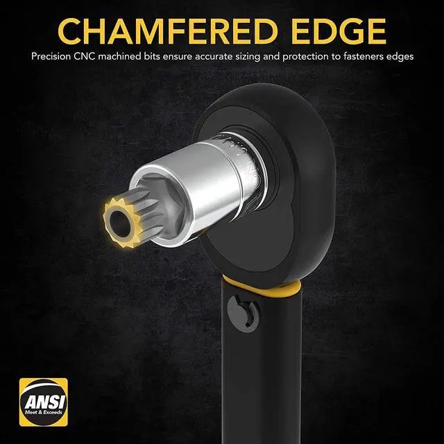 DURABLE - Drop-forged, Heat-treated S2 alloy steel bits, Reduce wear-outs. Hardened treated Chrome Vanadium steel sockets, Increase turning power.