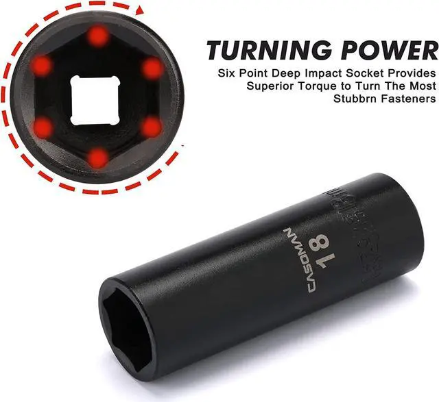 Durability radius corner design, 6 point install, removal, repair to remove, install, and repair hub or axle nuts on your vehicle.