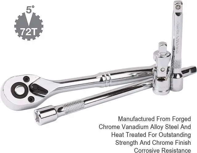 All tools are made from premium quality chrome vanadium steel with a mirror chrome finish that resists corrosion.