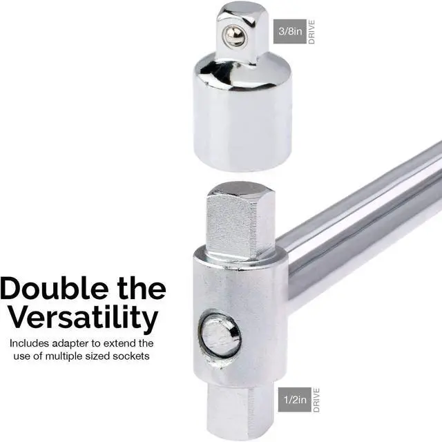 TWO WRENCHES IN ONE: Both 3/8" and 1/2" anvils are included for added versatility, and the 17Ó handle supplies ample torque