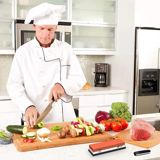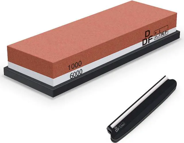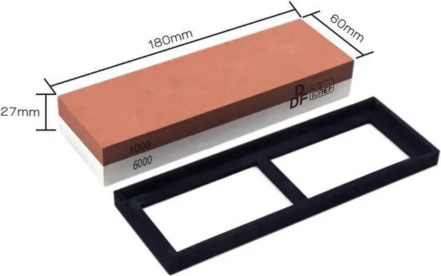 Professional 2-in-1 Sharpening Stone: the1000 grit side quickly sharpens dull and damaged knives; the 6000 grit side is ideal for finishing and polishing edges
