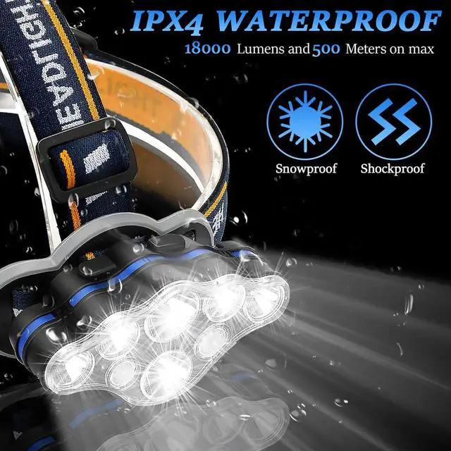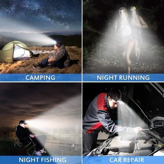 Waterproof & Multi UsesWaterproof LED headlamp protects against splashing water from anywhere, no need to worry about rains, snow. High quality battery box is more sealed to prevent water leakage. Extremely suitable for nighttime walking, running, bicycling, hiking, camping, climbing, fishing.