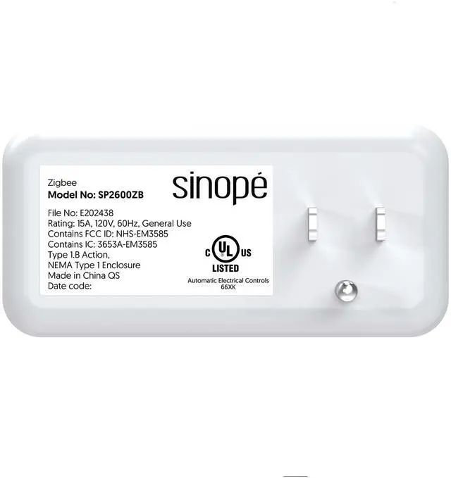 Complete your smart house by adding this plug-and-play smart plug to any of your rooms. Designed for a wide variety of small appliances, the SP2600ZB allows you to control remotely the connected devices through your smartphone or tablet from anywhere.* Ask your favorite voice assistant to start the coffee maker, to turn on the christmas tree lights or to activate scenes and automations. Indoor installation only. Not compatible with the Sinopé GT125 hub. North American version.*Permanent Internet connection and compatible Zigbee hub required. Operating voltage: AC 120 V 60 Hz Maximum load: 120 V - 15 A Setpoint range: 0 °C to 40 °C (32 °F to 104 °F) Conforms to UL 60730-1/CSA E60730-l