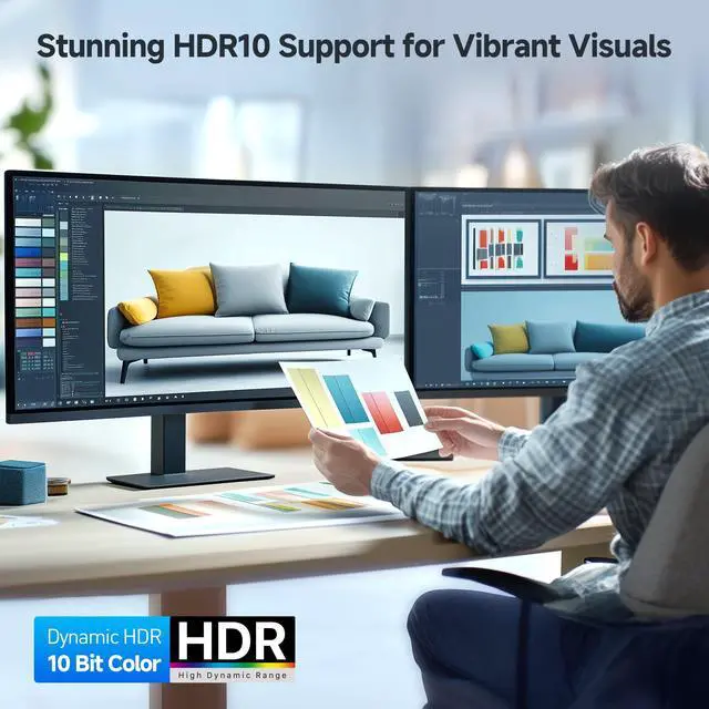 • Stunning HDR10 Support for Vibrant Visuals: Experience lifelike colors and sharp detail with HDR10 support, providing vivid imagery and deep contrasts. Perfect for cinematic viewing, professional video editing, and creative tasks, this adapter delivers enhanced video quality for any use case.