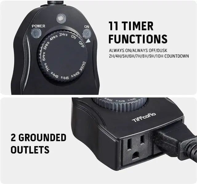 This light sensor timer can turn on/off your yard lights and decorations on a set schedule every day. Dusk to dawn, on at dusk and off after 2, 4,5, 6, 7, 8, 9 or 10 hours or always on, save your time and energy.