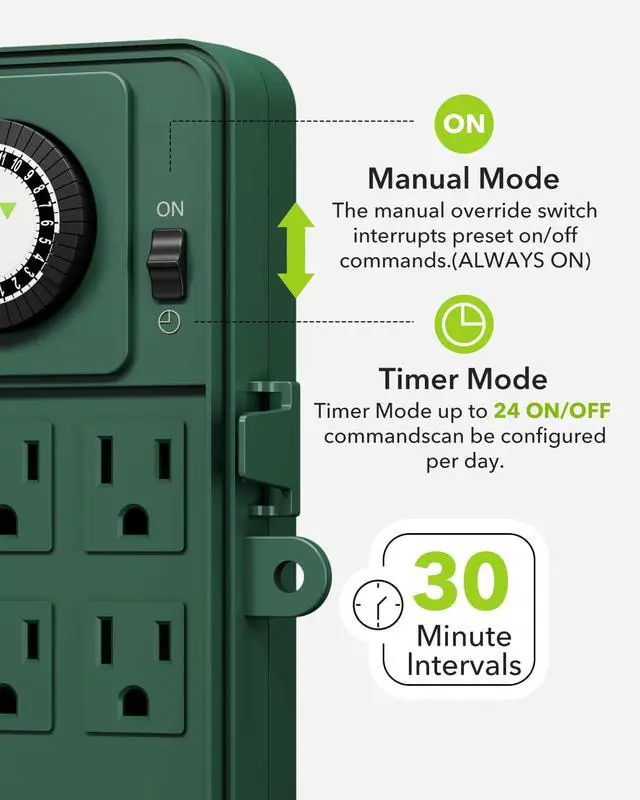 | 24-Hour Daily Repeat | Digital/8 Program | Photocell/Countdown/Remote | Photocell/Countdown/Remote | Photocell/Countdown |
