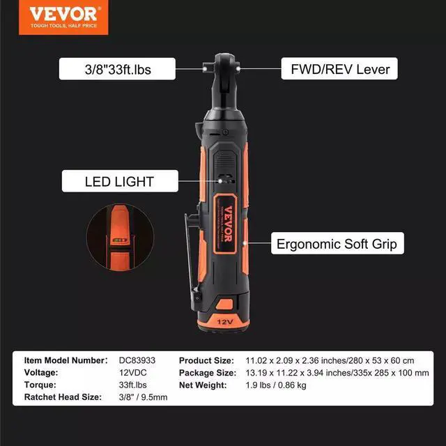 Looking for an efficient tool for mechanical repairs? Our electric ratchet wrench is here! It features max 33ft-lbs torque, a lightweight design with a rubber handle for comfort, and 9 different sockets for versatility. Get ready for convenient and efficient mechanical repairs.