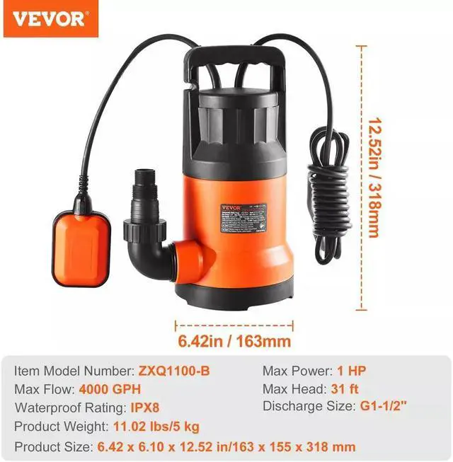 Crafted from tough materials like nylon and fiberglass, our submersible water pump is built to last. It's sturdy and durable, so you can rely on it to keep your yard dry and clean.