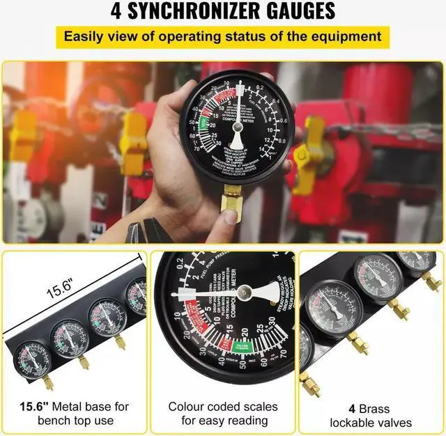 The carburetor synchronizer tool enable testing of the fuel delivery pressure to the engine to check for worn or defective parts, which gains excellent popularity in factories, workshops, auto repair shops, and households.
