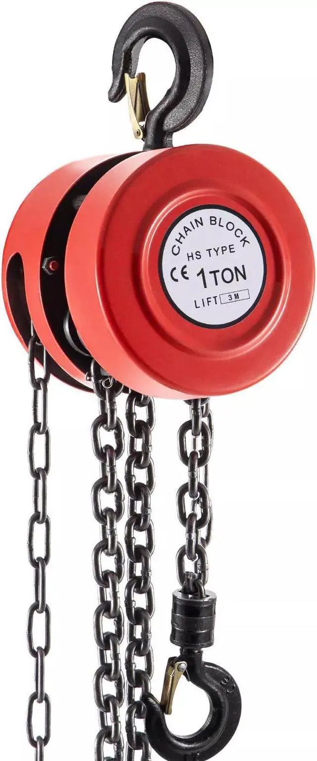 This chain hoist, featuring a 2200 lbs (1 ton) load capacity, is very suitable for lifting engines, tables, wood, and shop equipment - no need to climb ladders and cranks. You can load and drop securely through the hand chain and security brake. This is an ideal hand winch for far-ranging scenarios in heavy equipment loading.