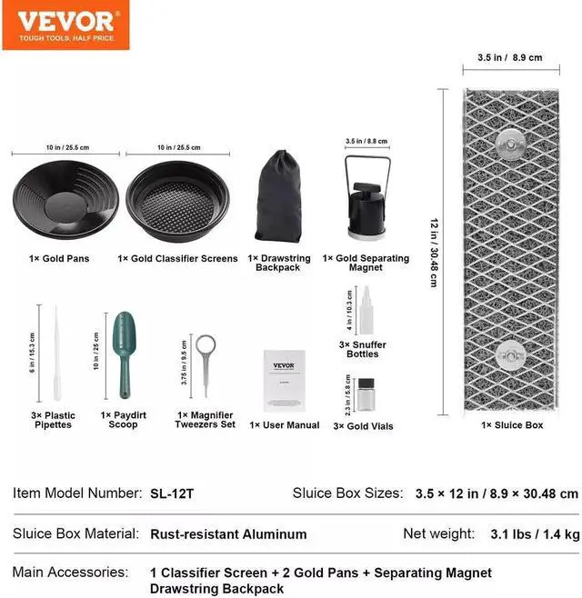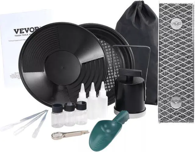 1. Our 16 pcs gold panning kit gathers everything you need for gold prospecting, including a gold sluice, classifier screens, a separating magnet, gold collection bottles, and more. Whether you're a novice or an experienced gold prospector, this kit has got you covered for all your needs.