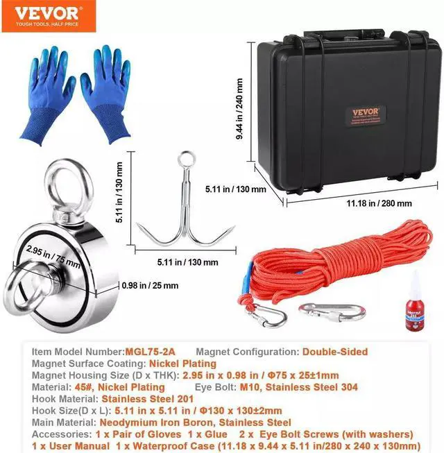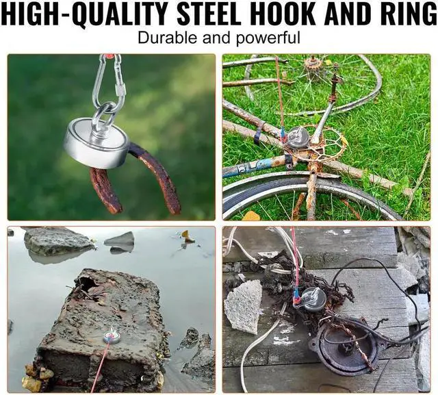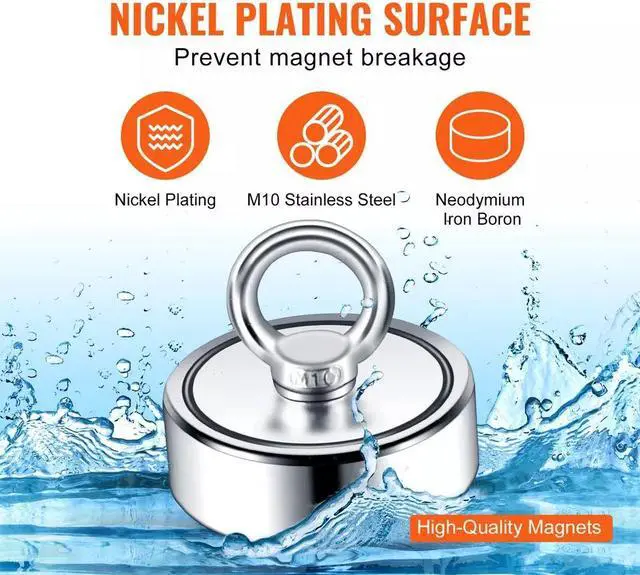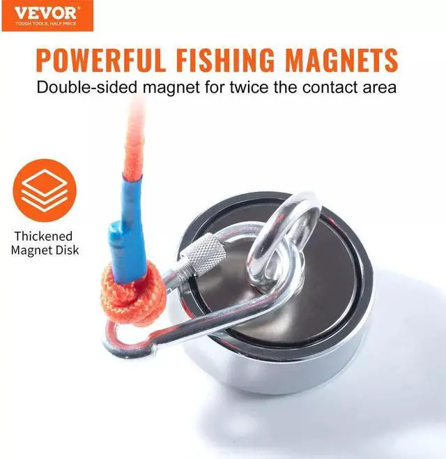 1. Experience the incredible pulling strength of our fishing magnets. With an enhanced contact area from double-sided magnets, you will get twice the magnetic power compared to single-sided magnets.