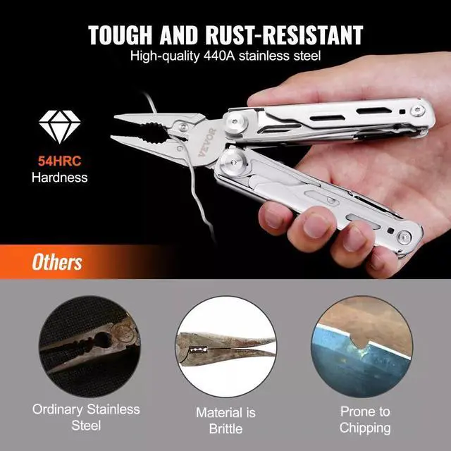 3. Our multi-tool is made of 440A stainless steel, which has high strength and hardness. It also uses professional heat treatment technology and a delicate sharpening process, keeping the blade sharp and providing excellent cutting performance.