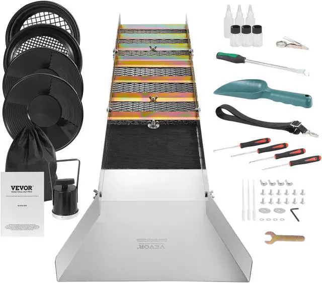 1. Our 23 pcs gold panning kit gathers everything you need for gold prospecting, including a gold sluice, classifier screens, a separating magnet, gold collection bottles, and more. Whether you're a novice or an experienced gold prospector, this kit has got you covered for all your needs.