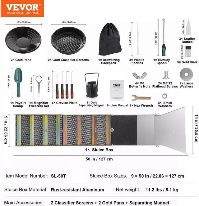 • Sluice Box Material:Rust-resistant Aluminum