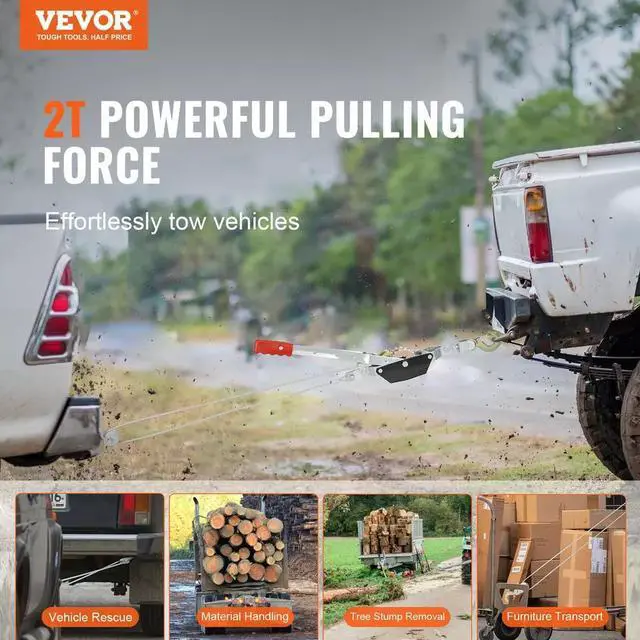 1. Need some serious pulling power? VEVOR's power puller has you covered. With its solid one-piece gear design, it glides effortlessly to secure whatever you're moving. Ideal for vehicle rescues, shifting materials, stump removal, or moving furniture, we've got your urgent needs sorted!