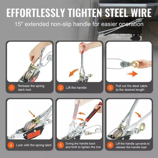 5. Why struggle when you can glide? Our come along hand winch's extended handle lets you tighten the rope with minimal effortall with one hand! The non-slip grip makes sure you handle the task, not fumble.