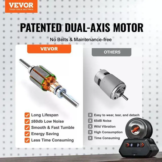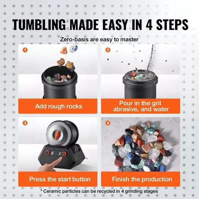 3. Automatically detects barrel load and adjusts speed for best efficiency. The power-off memory function helps the tumbler automatically restart and run the remaining programs after restoring the power.