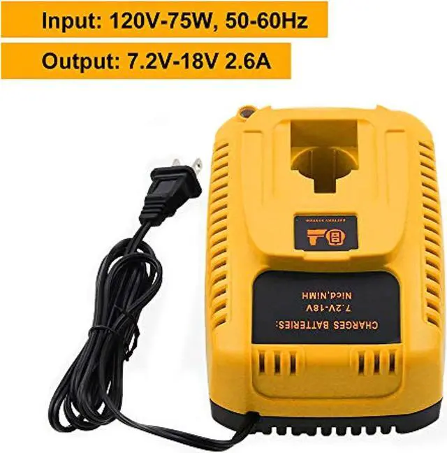 - Widely replacement: for Dewalt 18v battery charger DC9310, DW9116, DW9226, DW9118 and charger for 7.2v 9.6v 12v 14.4v 18v NiCad & NiMh cordless power tools battery (PlEASE NOTE: Only for NiCad & NiMh, Not for Lithium-ion Battery)