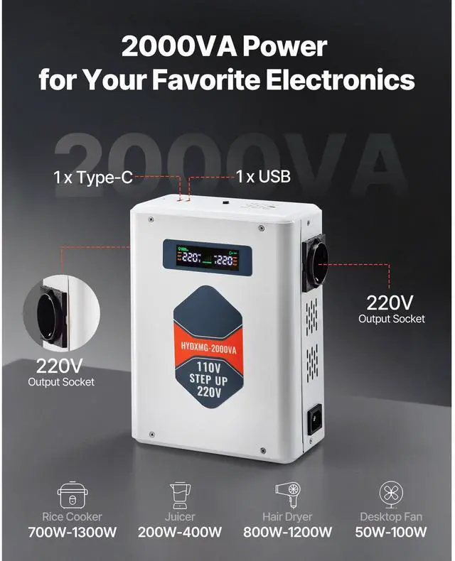 Power: 2000VA (Recommended for devices with power consumption under 1600W)