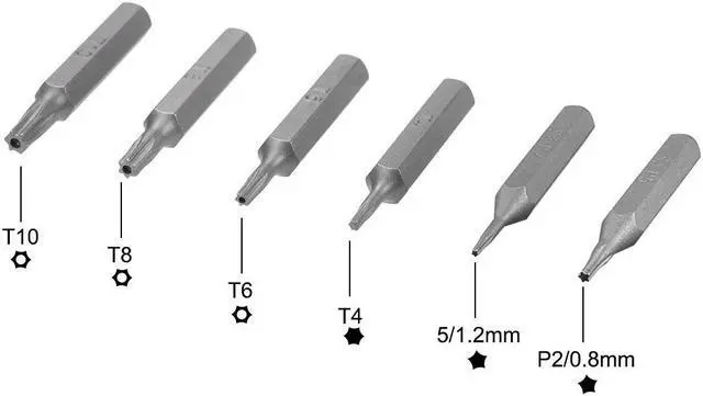 Size: Torx (T4); Torx-Hole (T6 T8 T10); Star-Shape(P2/0.8mm, P5/1.2mm)