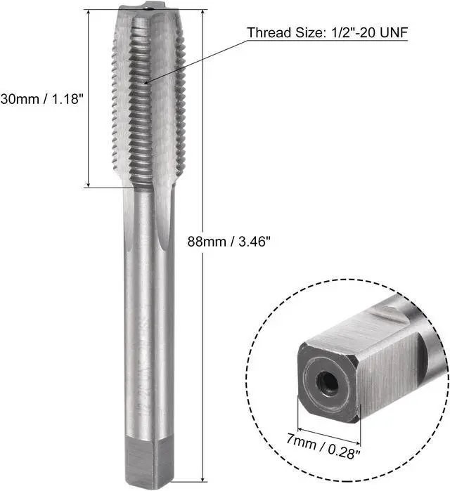 End Size: 7mm x 7mm / 0.28" x 0.28"T hread