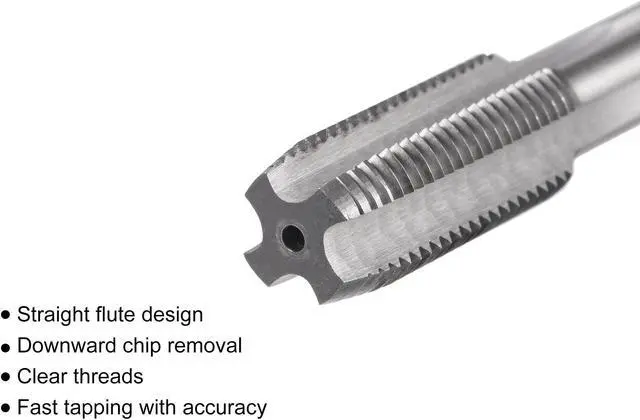 Threading TapDescriptions: 1. Straight flute design, downward chip removal. Left hand thread cutting, clear threads, fast tapping with accuracy. 2. High-speed steel tool is with high hardness and toughness for wear resistance. Features just the base substrate without any additional coatings, suitable for wide ranges of applications. 3. Suitable for processing through holes. Great for drilling and tapping aluminum, die steel, stainless steel, bronze, hard plastics, etc.. 4. Used on drilling machines, tapping machines, CNC and milling machines. Use with tapping oil to get higher quality threads and more durable taps. 5. Machine taps are suggested to be used with tap collets with overload protection. Hand use is easy to cause breakage to the tap due to uneven force.
