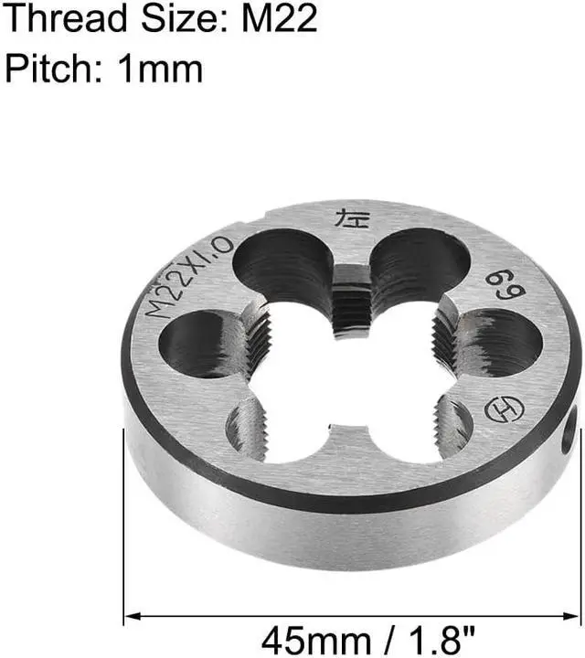 SteelFeatures: 1. Solid round dies are suitable for general purpose threading. 2. Round Dies are perfect for re-threading existing threads in hard materials like metal or making new threads in softer material such as plastic. 3. Ideal for maintenance and repair work in the shop or field. Die size is etched on the surface for easy identification.
