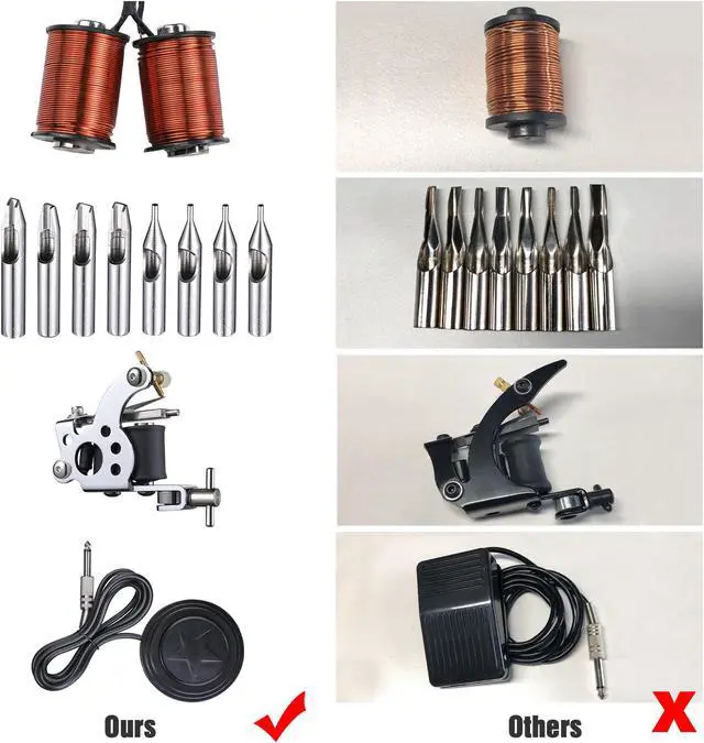 - Durable Tattoo Guns - 2 Professional coil tattoo guns for lining and shading to create various exquisite patterns; Premium steel gun frame for durability, 100% copper made coils to offer stronger vibration for working, also shows great heat dissipation for long time using
