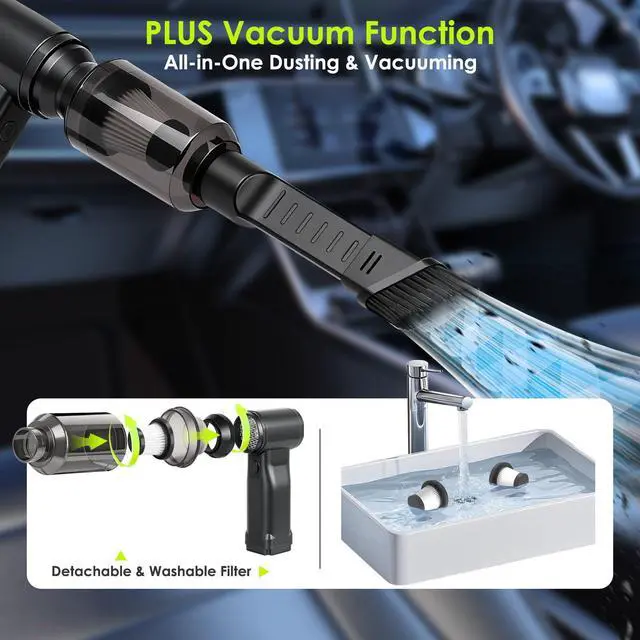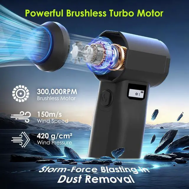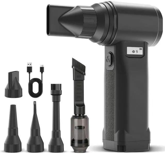 a.Electric air duster x1; b.USB A-C charging cable x1; c.Flat nozzle x1; d.Slim nozzle x1; e.Short nozzle x1; f.Long nozzle x1; g.Detachable vacuum nozzle x1; h.attachment connection x2; i.User manual x1