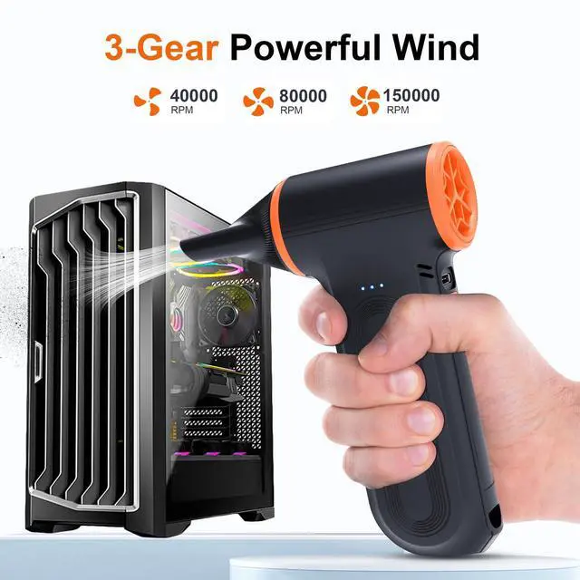 Press the button at the botton of the handle to start/stop the air blower (To start the third gear, please long press the button)