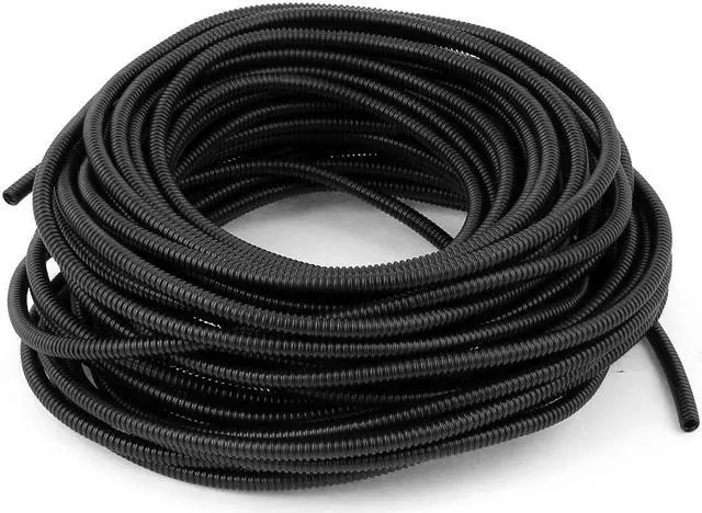 5mmx7mm Dia Flexible Corrugated Conduit Tube Pipe Hose Black 21M