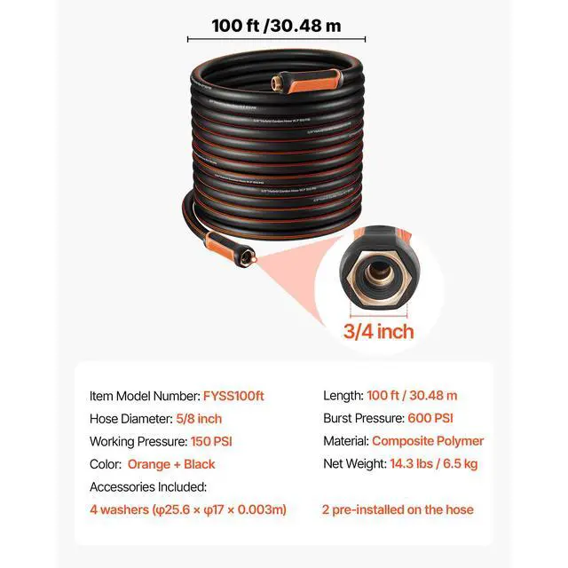 4 washers ( 25.6 x 17 x 3mm), 2 pre-installed on the hose