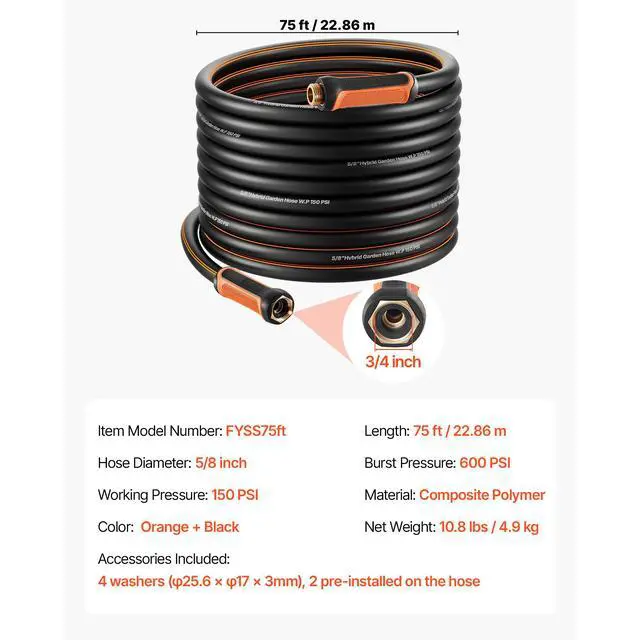4 washers ( 25.6 × 17 × 3mm), 2 pre-installed on the hose