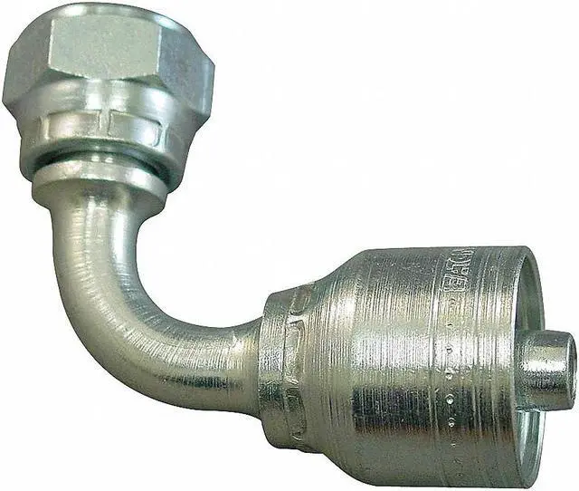 Hydraulic Crimp Fitting, For Hose Dash Size -6, For Use With Hose Series 2661(-12 through -32); EC110; EC115; EC118; EC210; EC215; FC310; FC510; FC579; FC611; FC619 (-12 through -32); FC639/FC839B; FC693; FC735; FC849/FC849B; GH120; GH194; GH195; GH663; GH681-6; GH781; GH793, For Hose I. D. 3/8 in, Thread Size 3/8 In. -19, Fitting Shape 90 Degrees Elbow, Swivel, Vacuum Rating Not Rated, Thread Type BSPP, Hose Fitting A Gender Female, Hose Fitting B Gender Genderless, Hose Fitting A Size 3/8 in