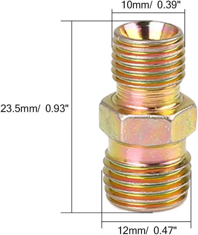 - M10 to M12 x 1.25mm male connector adapter, full port straight pipe fitting connector.