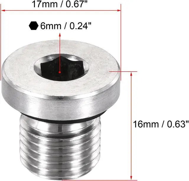 Features: Made of 304 stainless steel, corrosion and rust resistant, durable for long time use. Comes with a sealing ring for tight sealing. The internal hex head increases leverage and is easily controlled by a hex wrench. Used for closing and terminating the end of the pipe in industry, factory, outdoor garden.