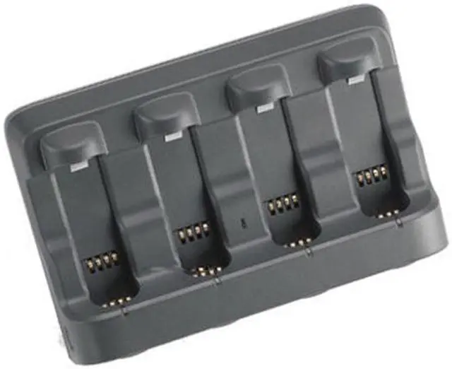 The Motorola SAC2000-4000CR four slot spare battery charger charges up to four single spare batteries. The cradle can sit on a desktop or be mounted on a wall.