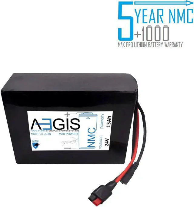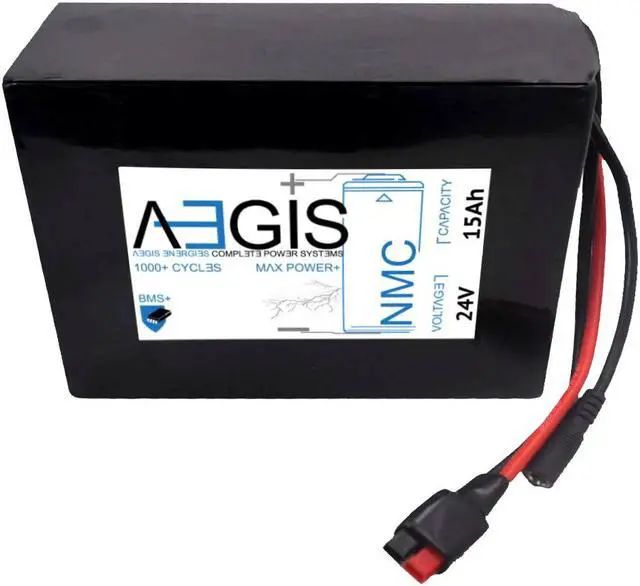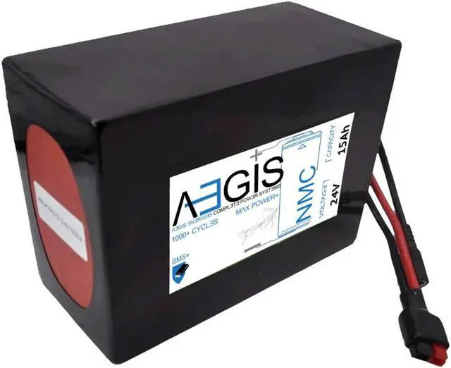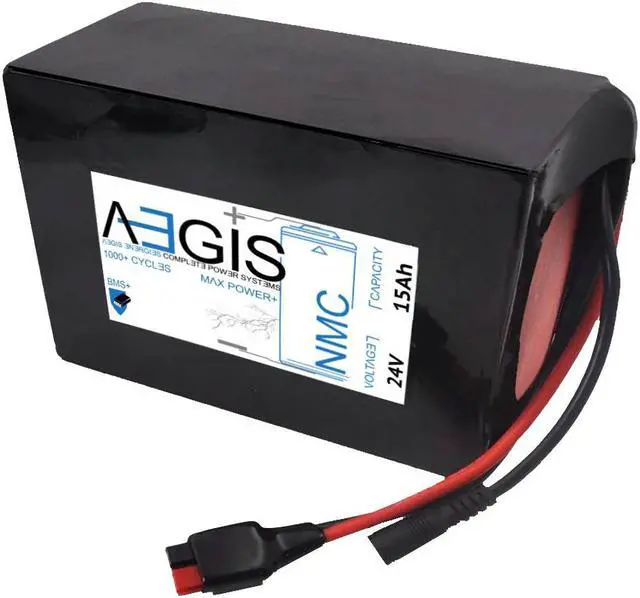 The Aegis Battery 24V 15Ah Li-Ion Battery is a state of the art rechargeable battery pack made with 18650 Li-Ion cylindrical cells packed with black PVC shrink wrap. It is perfect for bike lighting, RC toys, robots, laptops, and DVD external batteries. The battery comes with pre-assembled integrated Anderson Power Pole connectors allowing for easy compatibility. The Aegis battery has a built-in battery management system (BMS) that keeps the battery running at peak performance and protects the cells for thousands of cycles, including over-charge, over-discharge, over-current, and short-circuit protection.