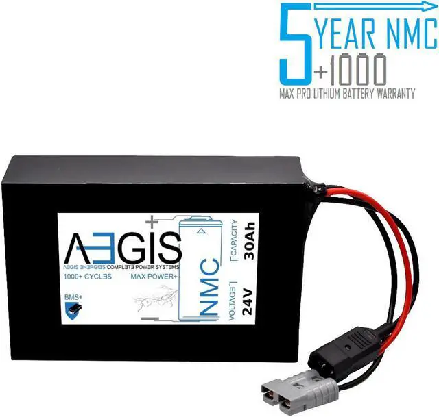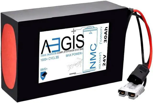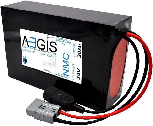 The Aegis Battery 24V 30Ah Li-Ion Battery is a state of the art rechargeable battery pack made with 18650 Li-Ion cylindrical cells packed with black PVC shrink wrap. It is perfect for bike lighting, RC toys, robots, laptops, and DVD external batteries. The battery comes with pre-assembled integrated Anderson Power Pole connectors allowing for easy compatibility. The Aegis battery has a built-in battery management system (BMS) that keeps the battery running at peak performance and protects the cells for thousands of cycles, including over-charge, over-discharge, over-current, and short-circuit protection.